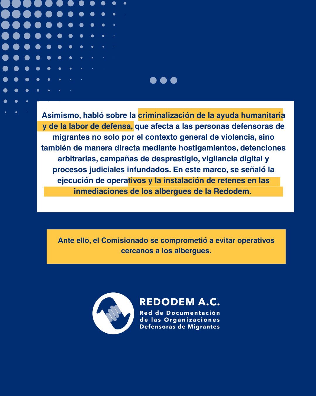 Participación en mesa de trabajo con el comisionado del Instituto Nacional de Migración